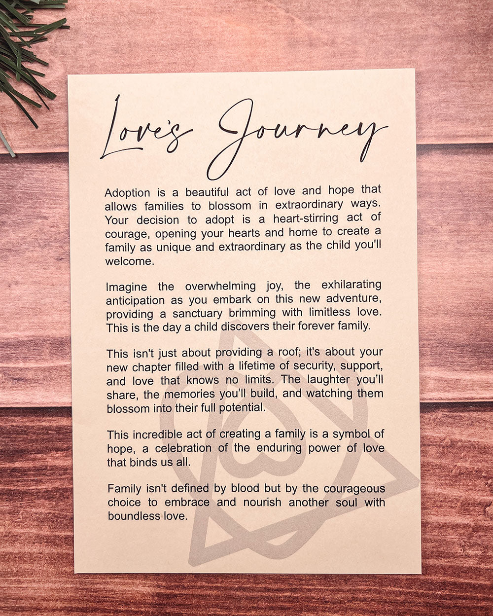 - Handcrafted with care using high-quality wood, featuring a triangle heart design symbolizing the bond of adoption