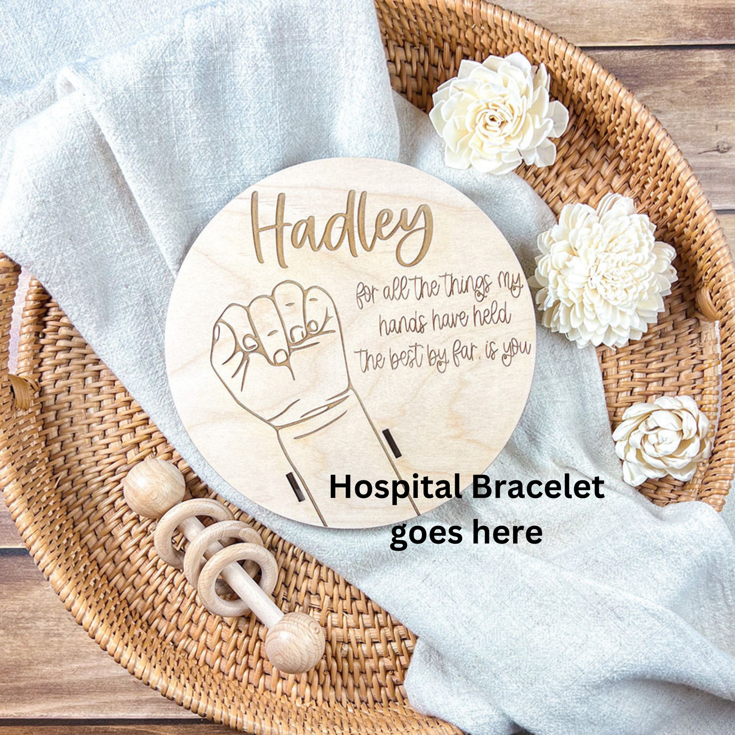 Personalized Baby Keepsake, Engraved Wooden Display, Hospital Bracelet Holder