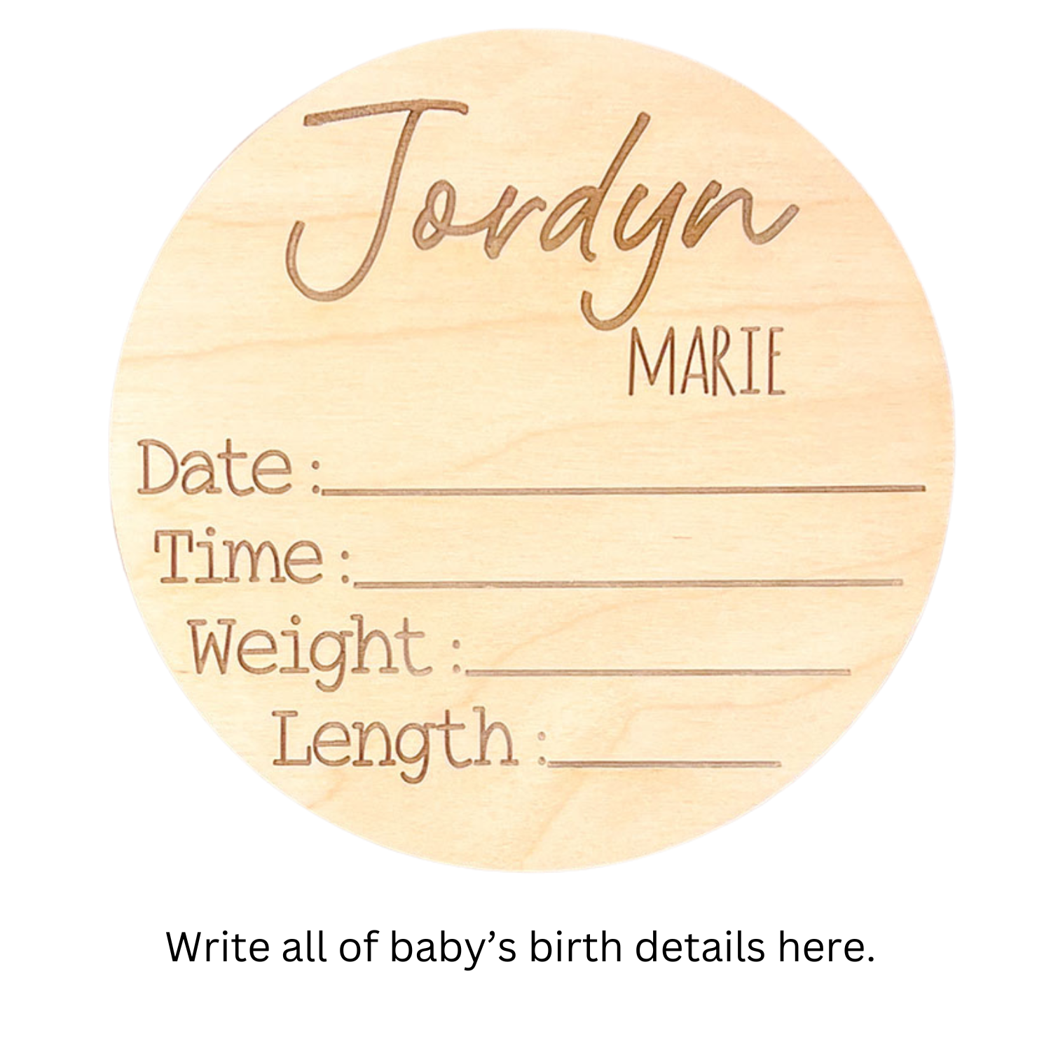 Celebrate your baby's arrival with a beautifully crafted personalized wooden name sign! Made from high-quality birch wood, this delicate round plaque features your baby’s name in an elegant mix of script and print, creating a timeless keepsake. Whether used for newborn photography, hospital birth announcements, or nursery décor, this custom name sign adds warmth and charm to every special moment. A heartfelt gift for baby showers or new parents, this keepsake preserves the joy of welcoming a little one in a way that lasts forever.
