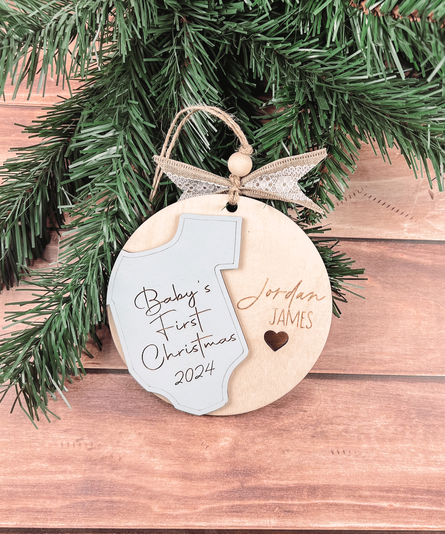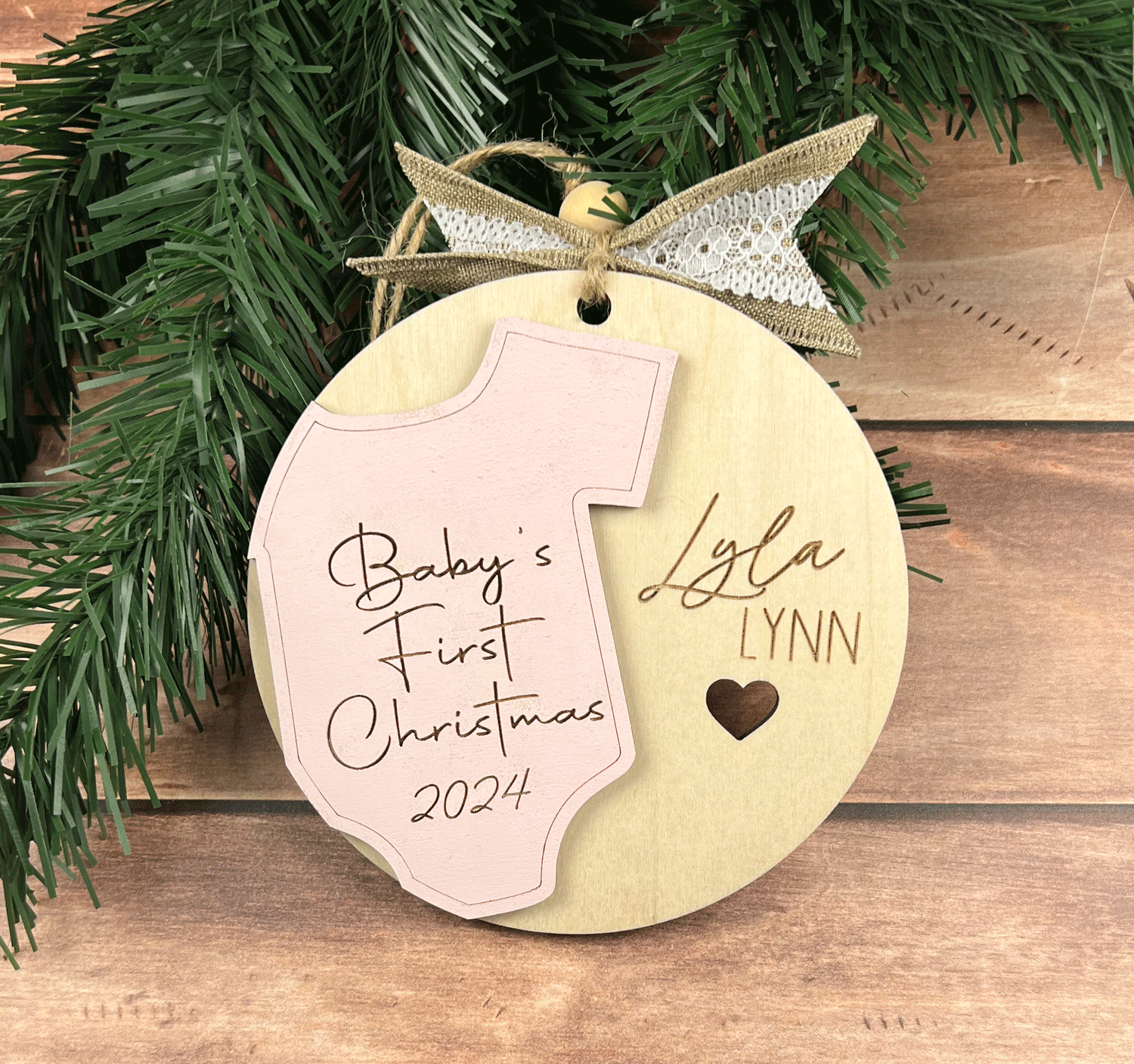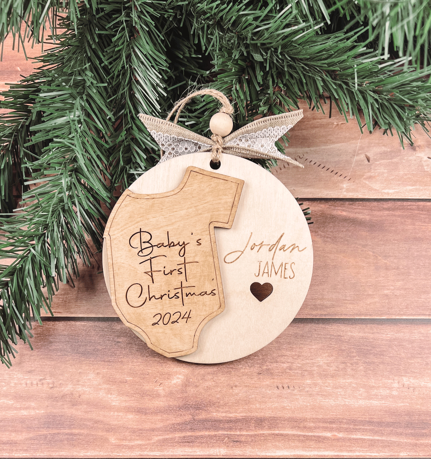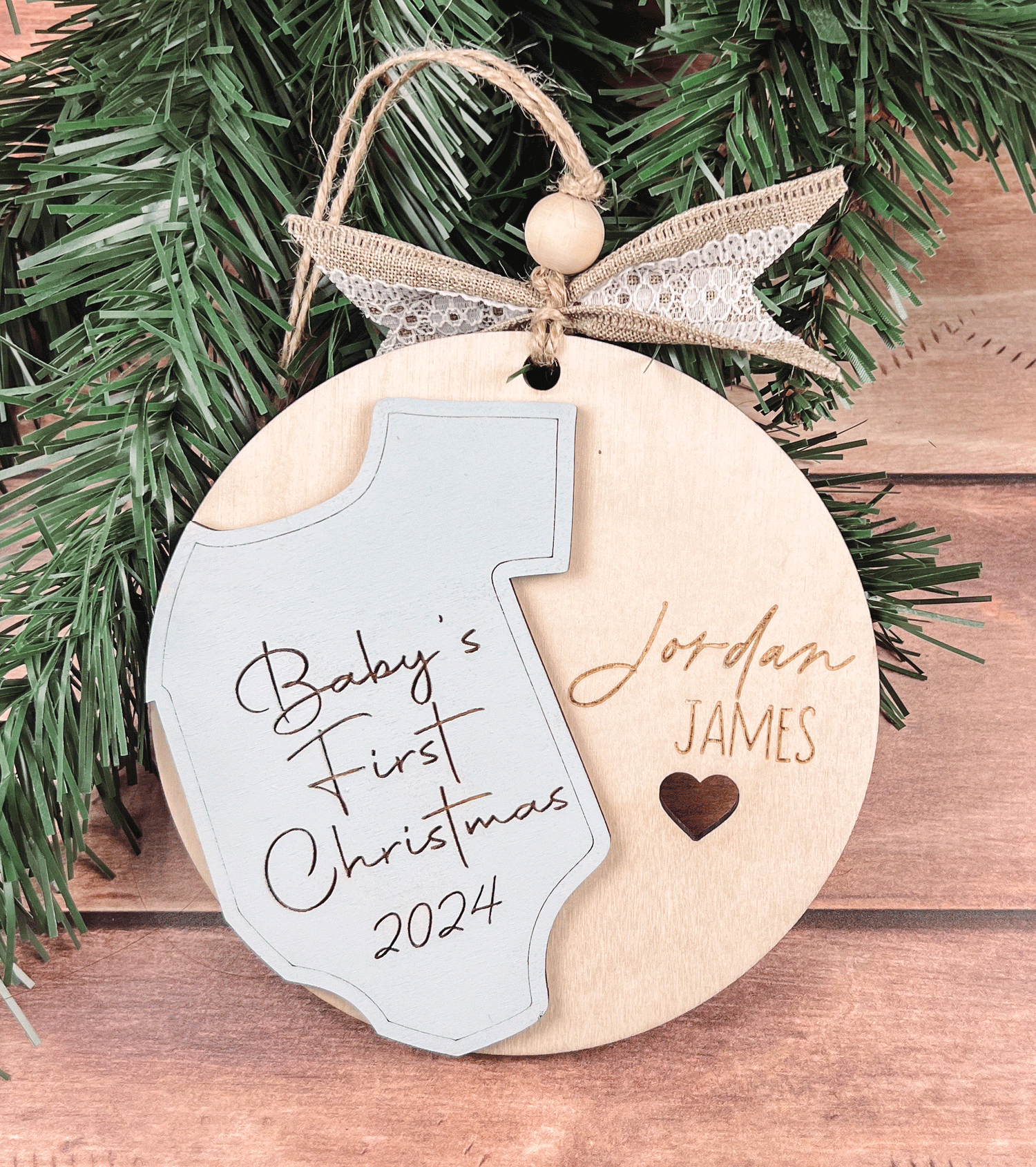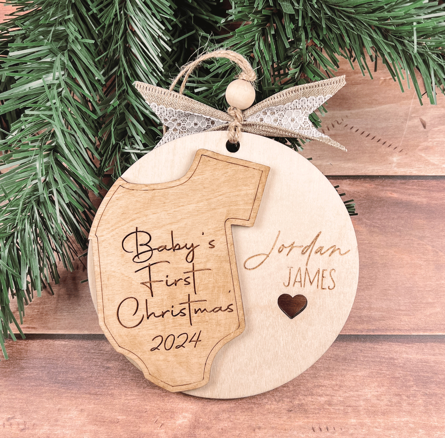 Personalized Baby's First Christmas Ornament 2024 - Custom Engraved Keepsake with Name - Perfect Gift for New Parents