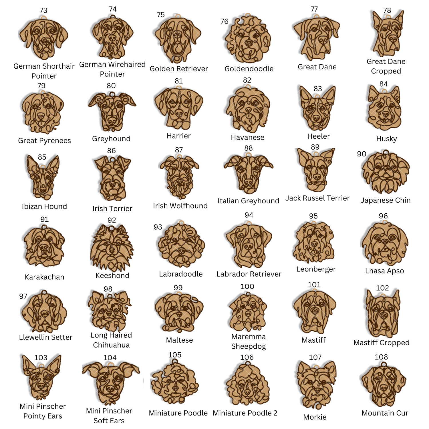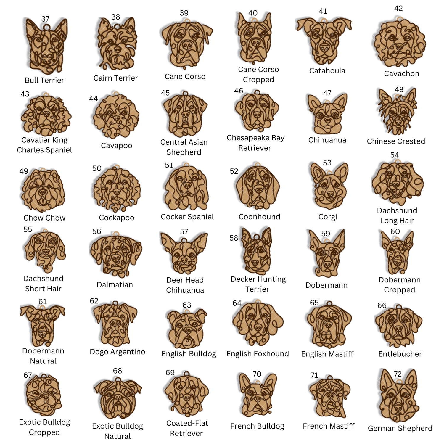 ✔ You can choose to have either a line art drawing of your dog's breed or for a neutral sign you can choose to have a small bone with a heart in the bottom circle