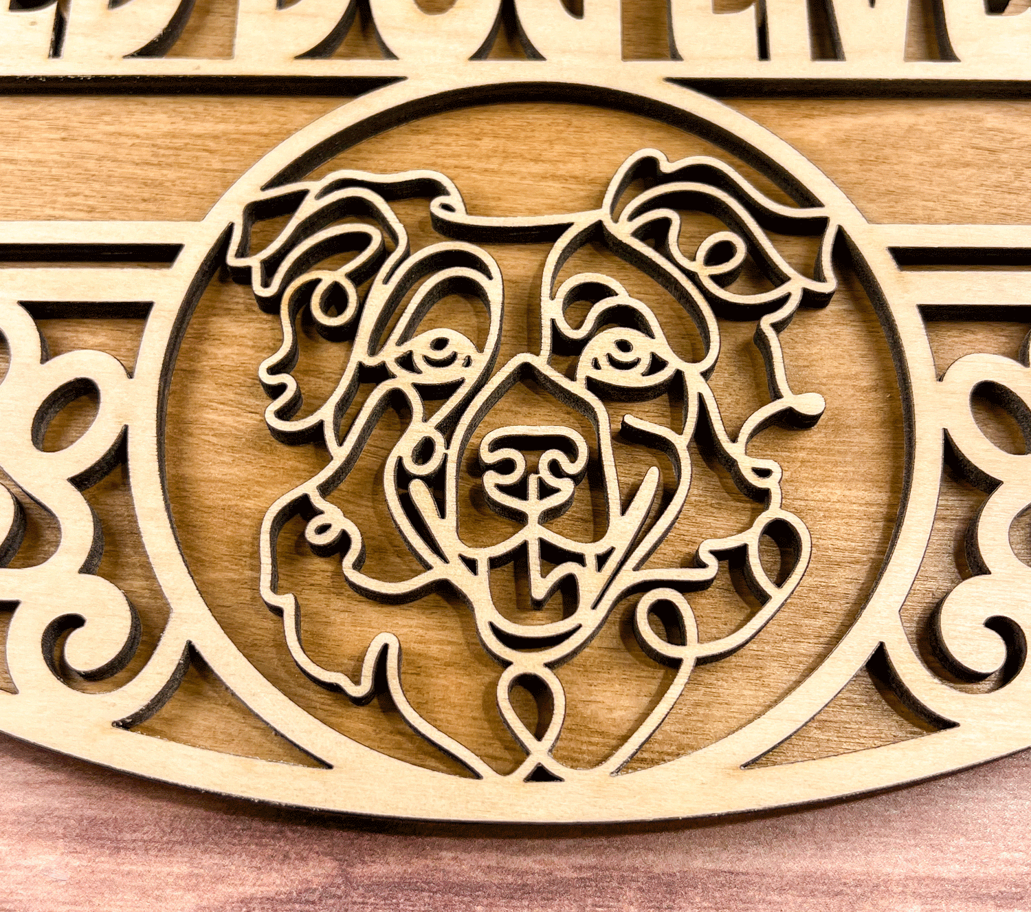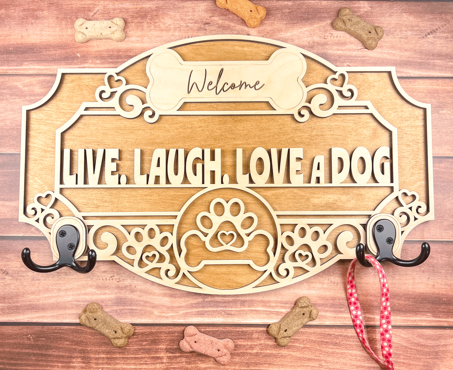 Celebrate the joy and companionship of your four-legged friend with this custom dog leash holder! Handmade from quality wood, this 16.5" x 11" sign features an adorable line art drawing of your pup’s breed, with 154 breeds to choose from. Personalize the dog bone with a name or a friendly welcome, and pick from 12 different sayings to make the sign uniquely yours. With two sturdy hooks for leashes, collars, or keys, this sign adds warmth and charm to any entryway. A perfect gift for dog lovers, new pet parents, or anyone who believes that a spoiled dog makes a happy home.