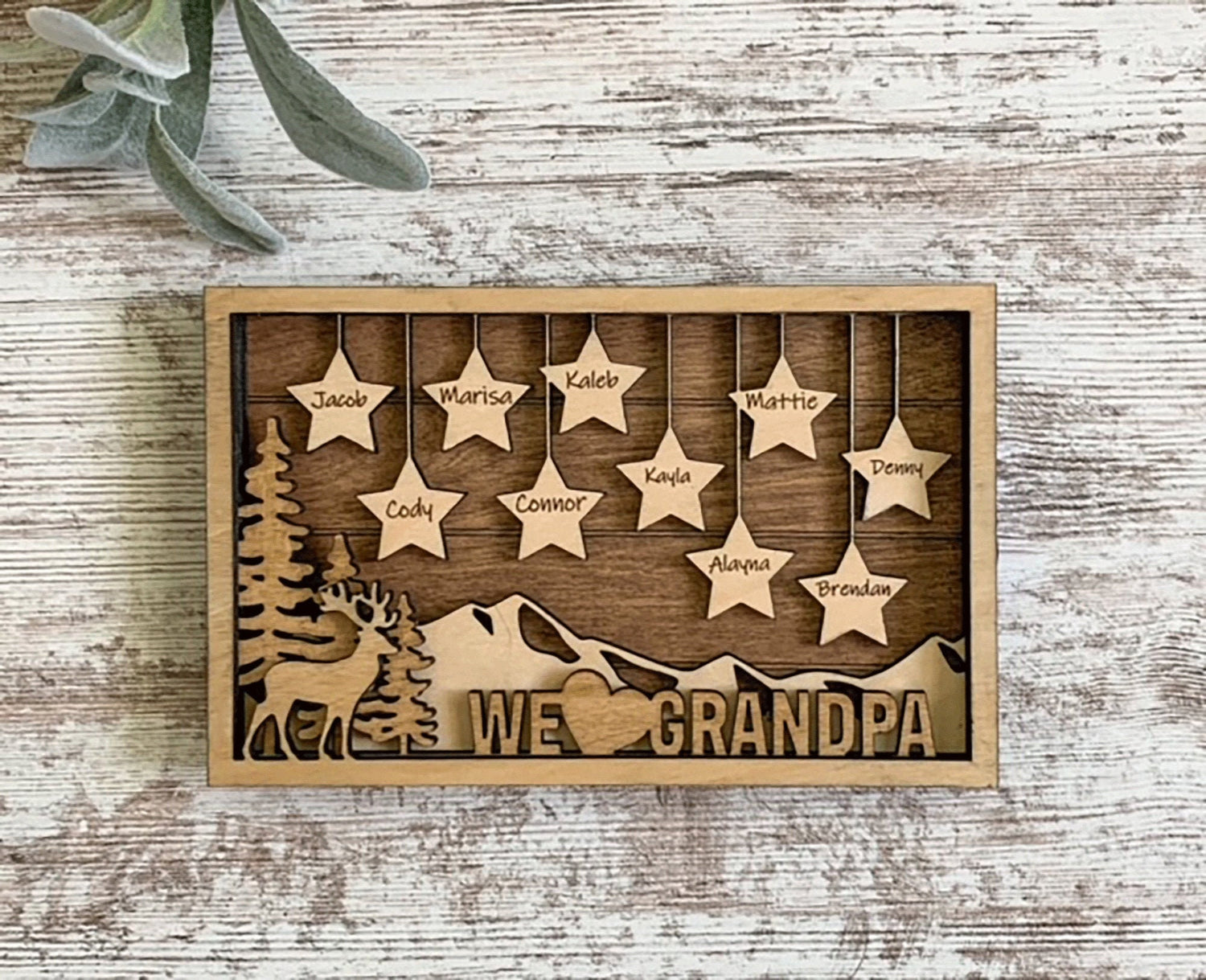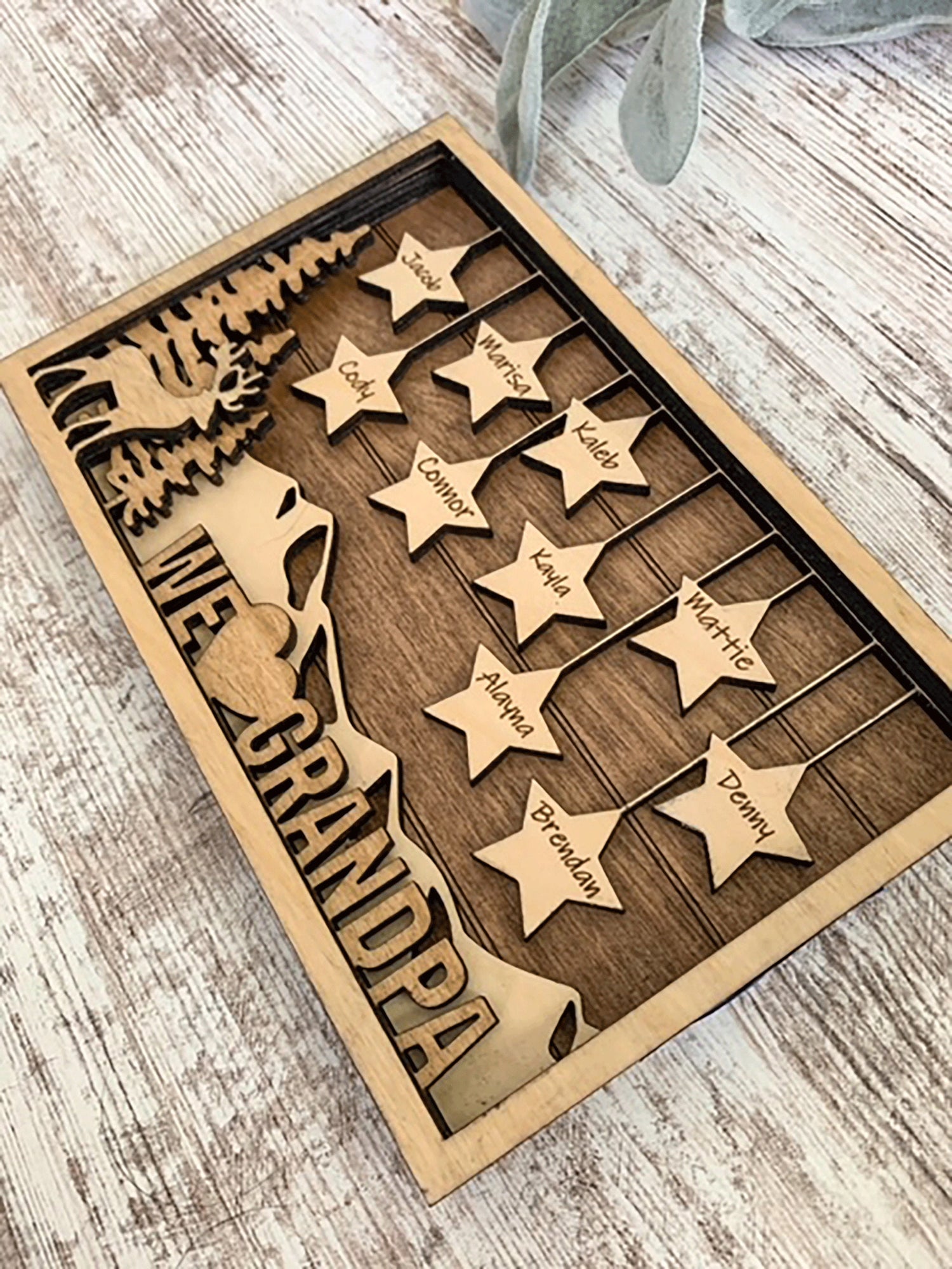 This unique family tree with all the grandkids' names would make the perfect Father’s Day or Christmas gift. This sign can be made with 1 to 25 names and can be customized to say, Grandpa, Papa, Grandad, or any name you choose.