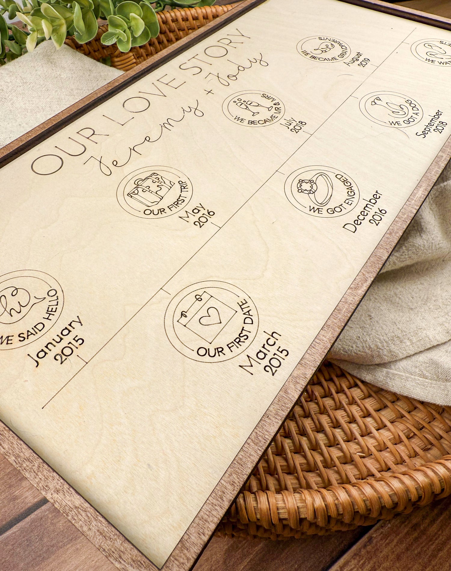 Personalized Love Story Timeline Sign, Custom Couple Milestone Wood Wall Decor