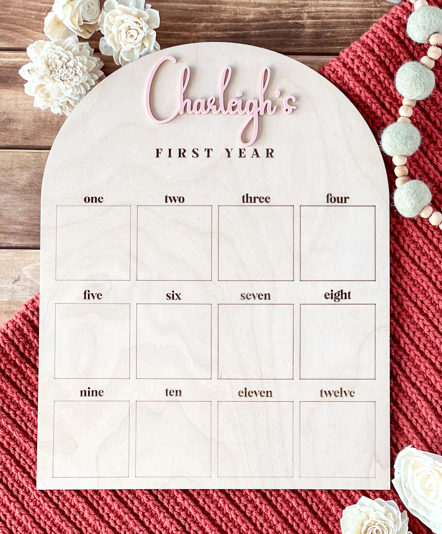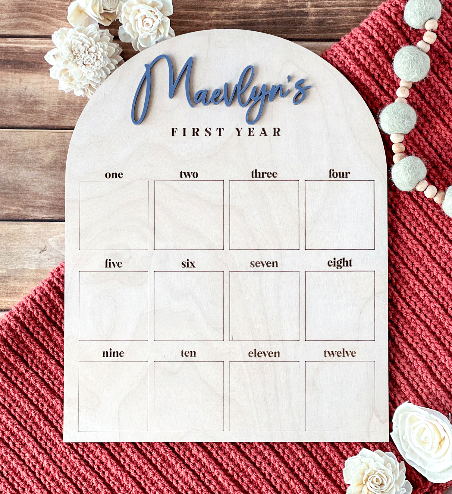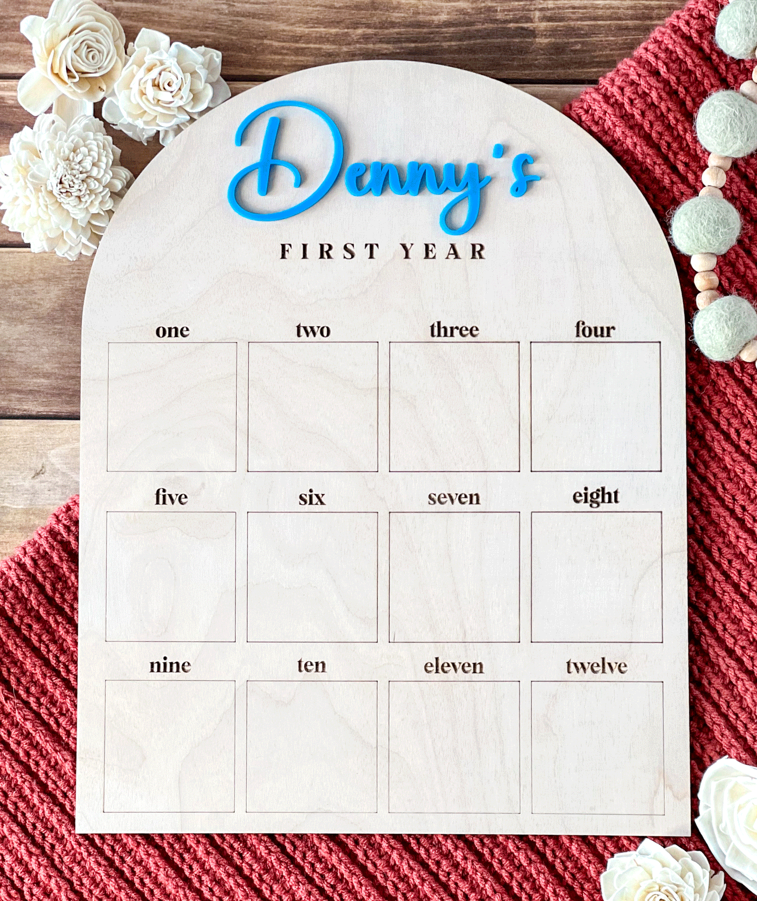 Welcome to our personalized Wood Baby's First Year Photo Board! Cherish every precious moment of your baby's first year with this beautifully crafted keepsake.