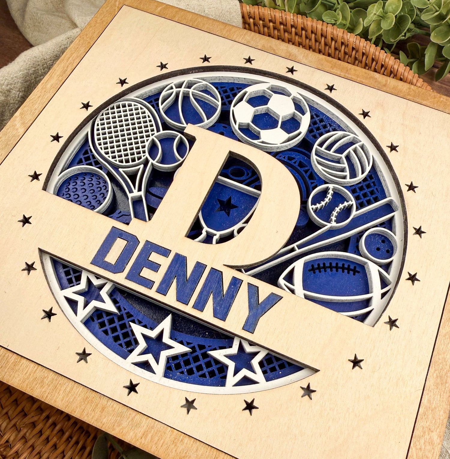 Personalized Sports Name Sign – Custom Wooden Boys Room Decor, Gift for Son or Teen, Game Room Wall Art